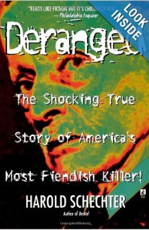 In this book Schechter turns his keen historian’s gaze on real-life serial killer Albert Fish, who killed–and ate–as many as 15 children in New York City in the 20s. Fish resembled a meek, kindly, white-haired grandfather, but was actually an intense sadomasochist whose sexual fetishes included almost everything known to psychiatry. For example, he stuck 29 needles into his pelvic region. Apparently Schechter, while writing his book Deviant about Ed Gein, asked Robert Bloch (author of Psycho), “Why are people so fascinated by Ed Gein?” Bloch answered, “Because they haven’t heard about Albert Fish.”
